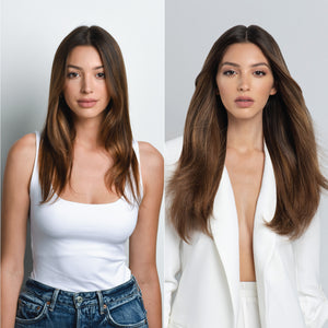 Complete a customised transformation for length, volume and colour in under an hour utilising our three tape sizes and types. Each extension application lasts six to eight weeks and allows for up to five reapplications for a total of eight to ten months of wear.